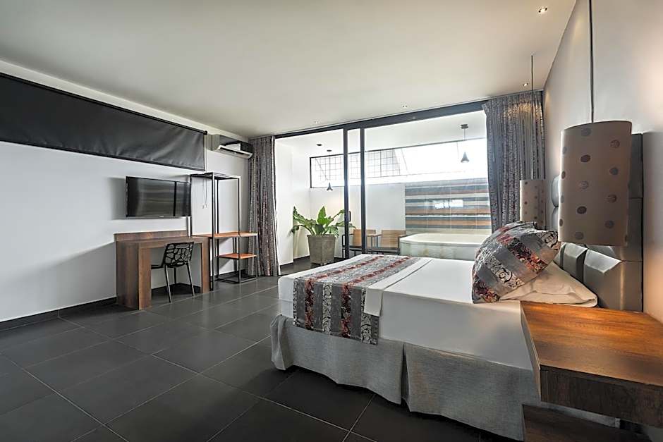 The hot tub and spa bath are the standout features of this double room. This air-conditioned double room includes a flat-screen TV with satellite channels and a private bathroom. The unit offers 1 bed.